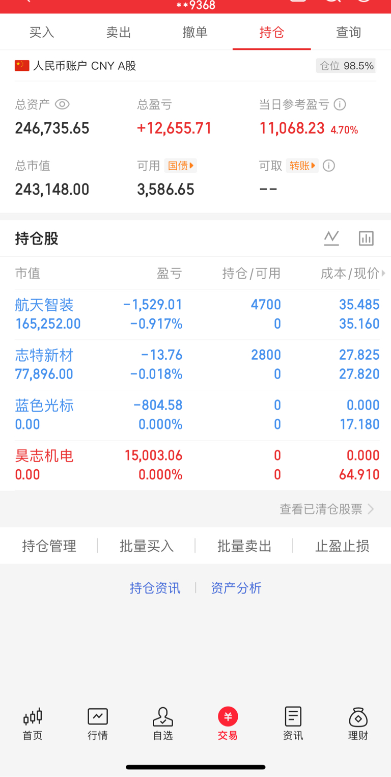 13个点走了昊志机电,都是潜伏盘,不指望拉太多,开盘走了蓝色光标,为了去300986,本以为今天严重异动会有低吸机会,结果没有,大概率8板高度吧,去年是光线传媒,前年是银之杰,在之前是维海德,这些都盈利了几个板,唯独300986参与迟,今年3连板大号几乎没有。有了不参与有心魔。今天开涨停,没勇气像光线这些梭哈。