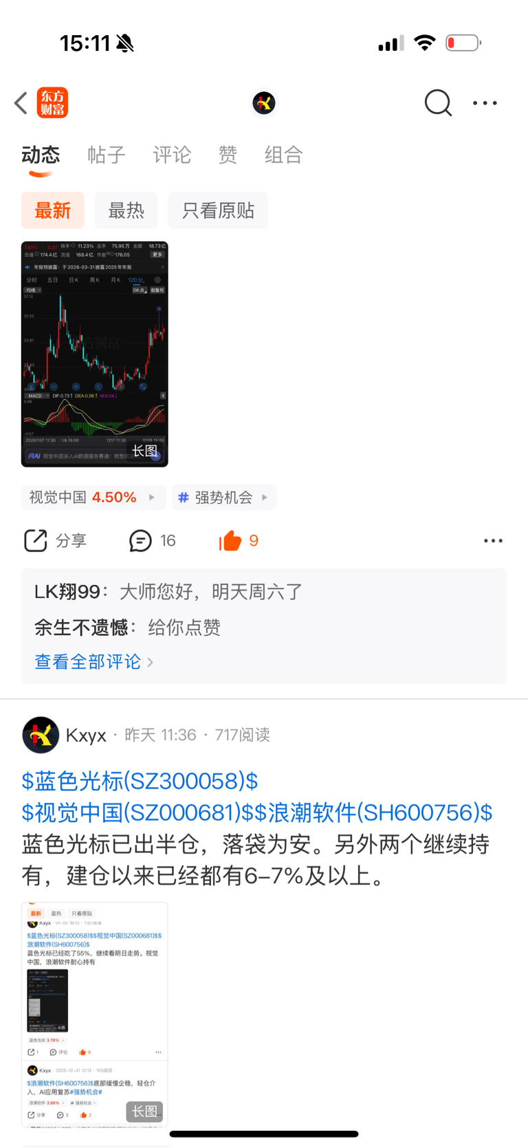 浪潮软件视觉中国这几天走势特别好,下周有望起飞,蓝色还有半仓在格局,还好没有全卖