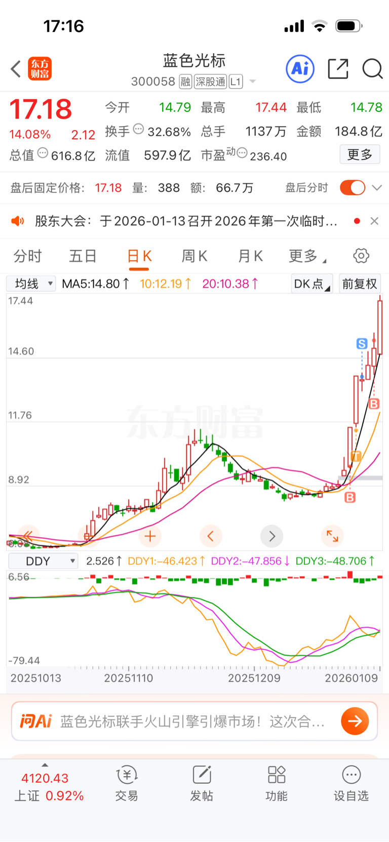 $蓝色光标(SZ300058)$ 最终还是忍住了,早上就想卖的!再等等