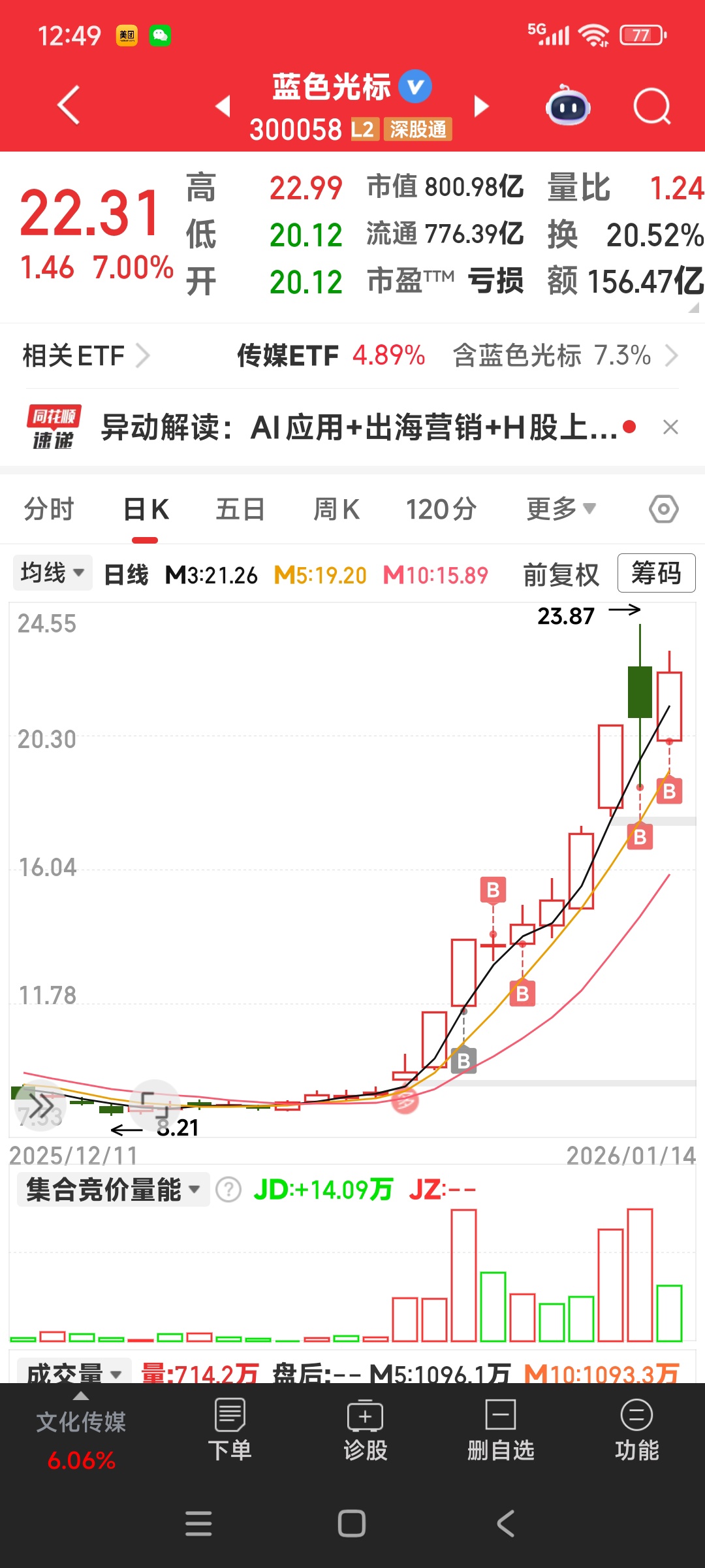 敢于低位满仓梭哈!蓝色光标下周三个交易日需要躲异动,看看主力选择横盘绕异动,还是直接闯异动!蓝色光标盘子不小,个人偏向于绕异动,下周见分晓!