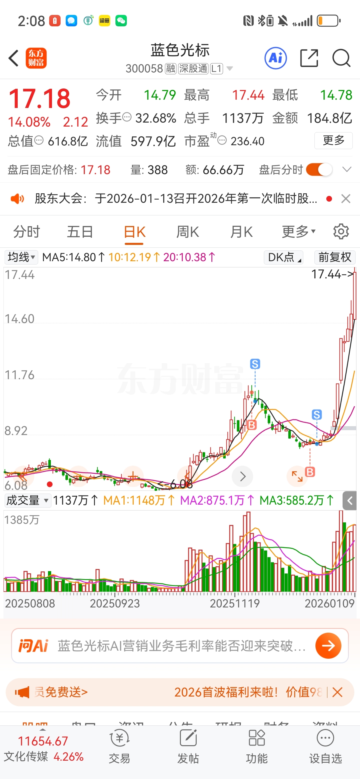 $蓝色光标(SZ300058)$ 大腿都要捶断了