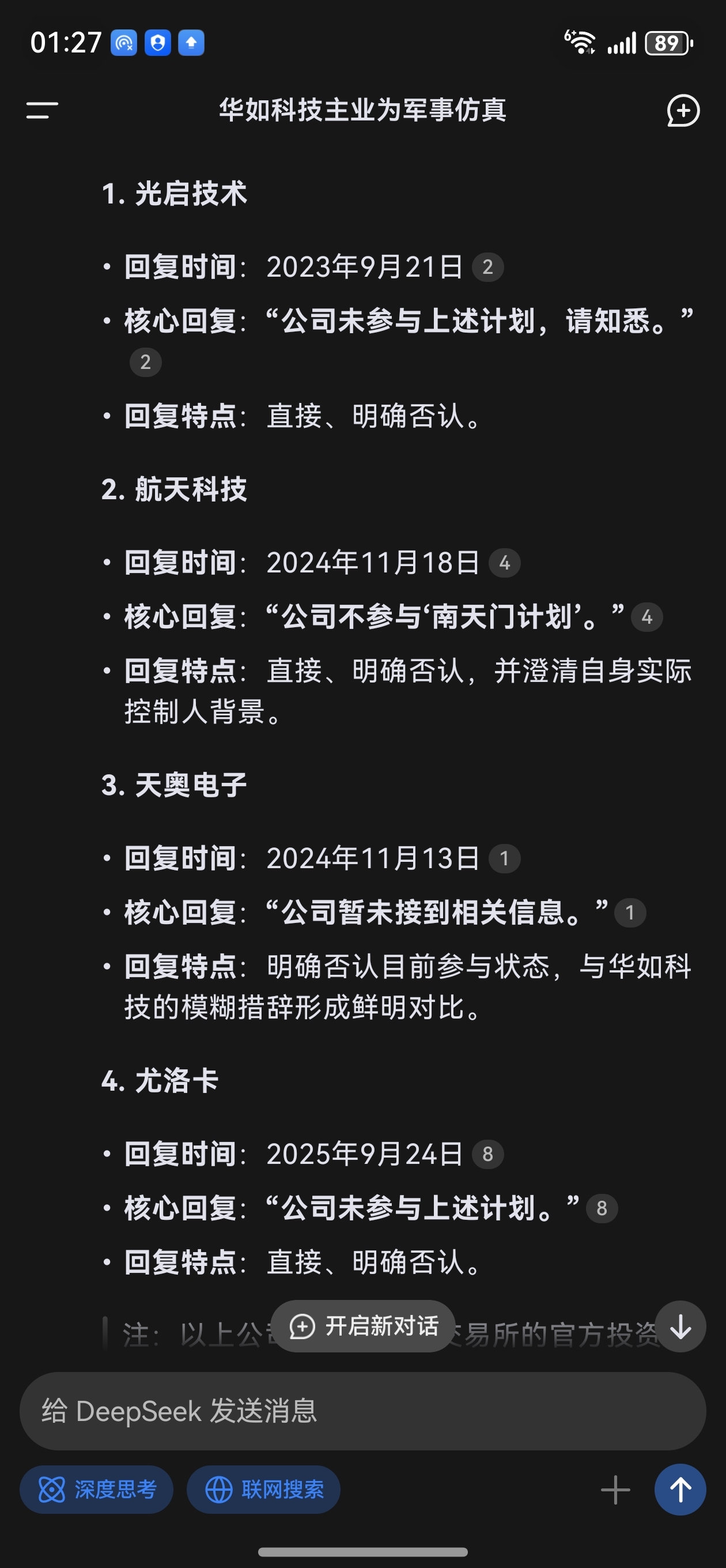 $华如科技(SZ301302)$ $中直股份(SH600038)$ $中航成飞(SZ302132)$ 大家对比一下,没参与南天门计划公司的答复都很明确,只有华如科技没否认。牛