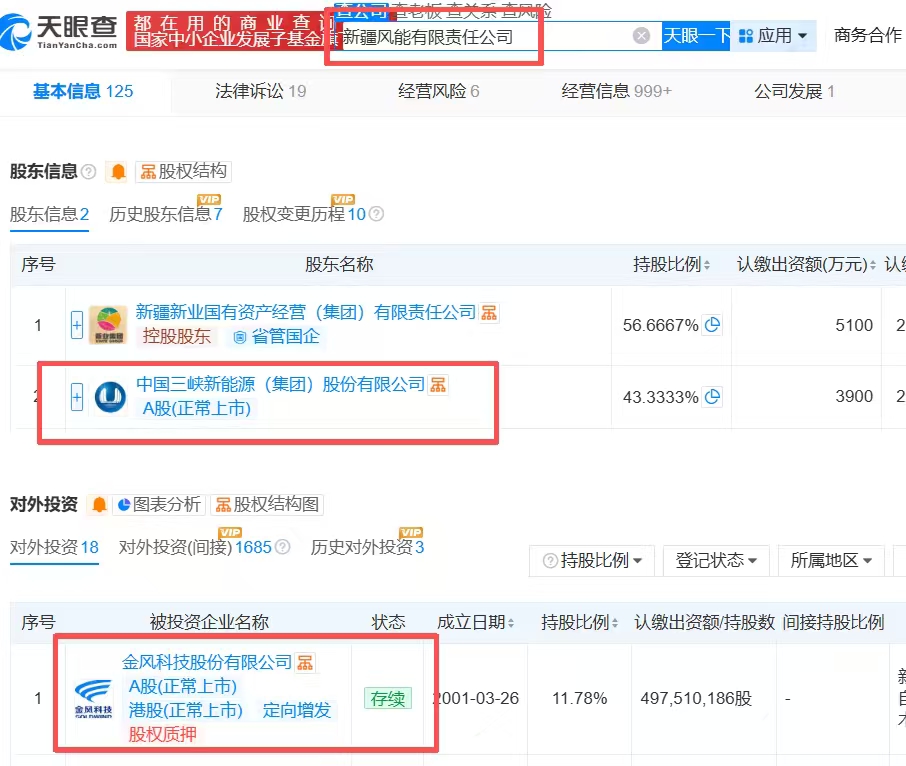 金风科技背后的大股东竟然是三峡能源。三峡能源直接持股9.16%,三峡能源还持有新疆风能有限责任公司43.33%的股权,间接持有金风科技约5.1%的权益。综合计算,三峡能源对金风科技的总体持股约6.058亿股,权益比例达到14.3%。三峡能源间接持有蓝箭航天股权比例:14.3% × 10.0962% ≈ 1.44%。