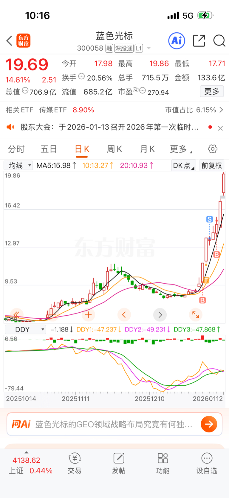 $蓝色光标(SZ300058)$ 第一次涨的发慌