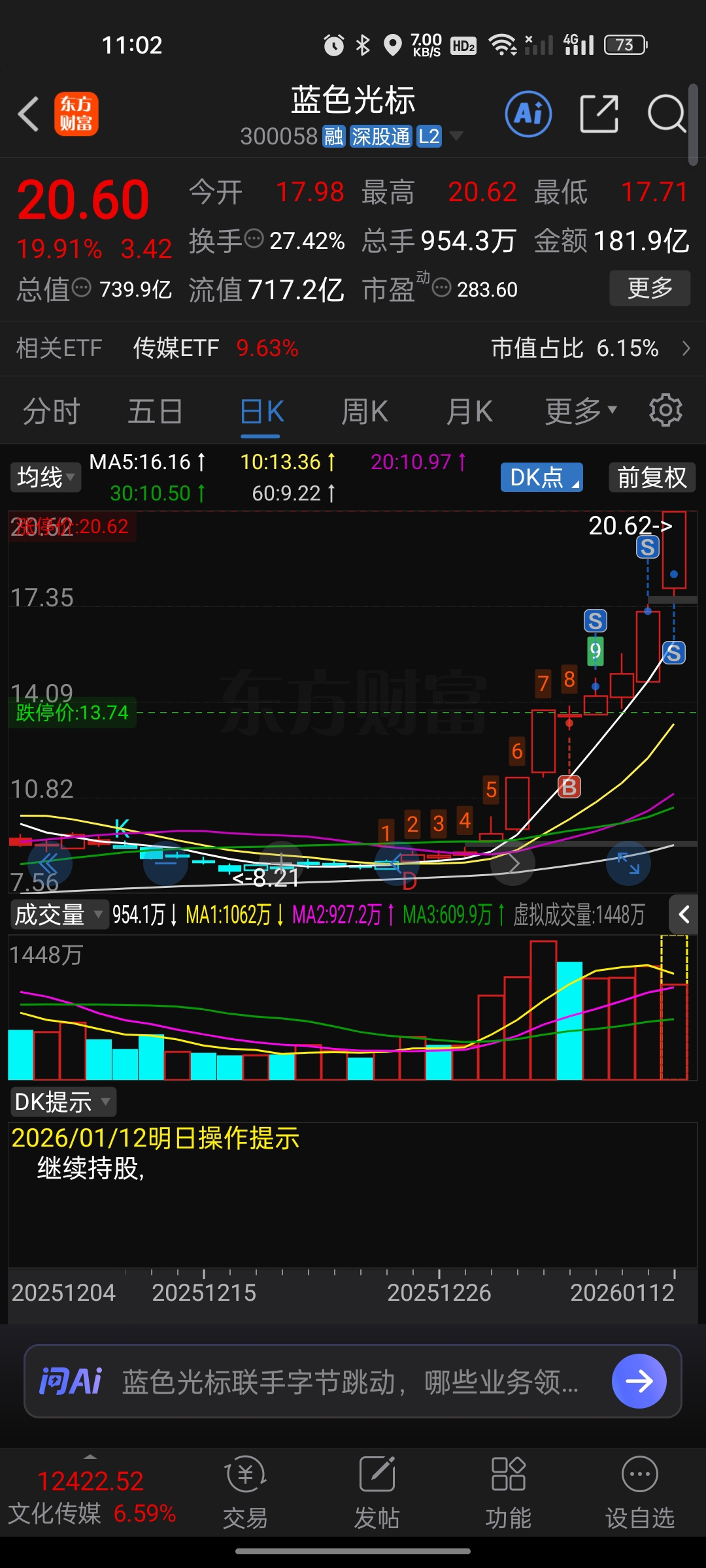 $蓝色光标(SZ300058)$ 卖飞了 卧槽