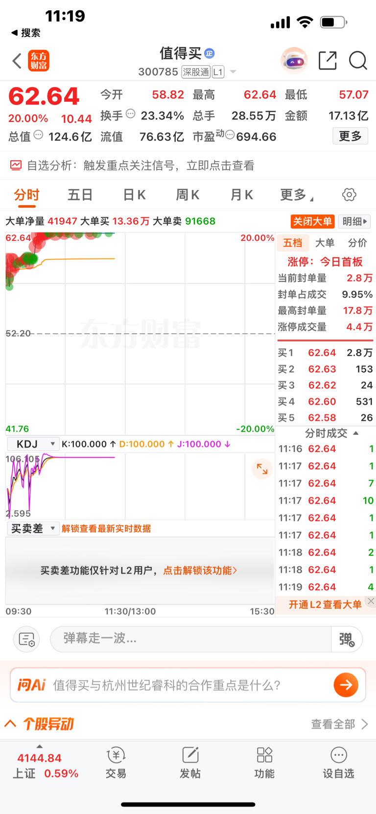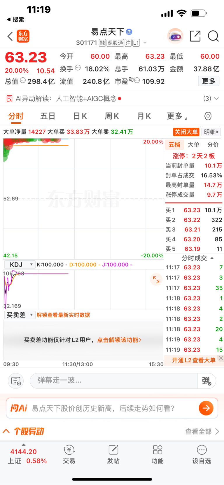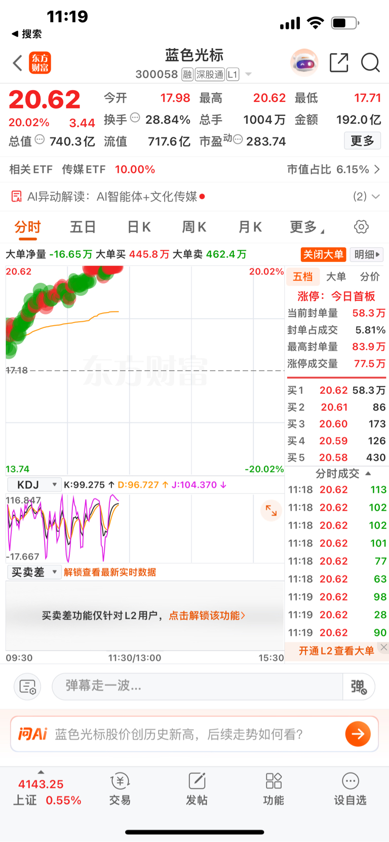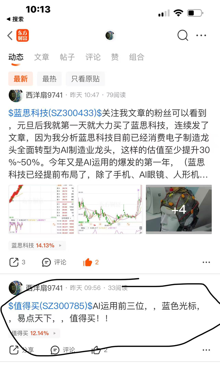 ,上周4我发文章AI运用的前3位(蓝色光标,易点天下,值得买)==今天全部涨停大