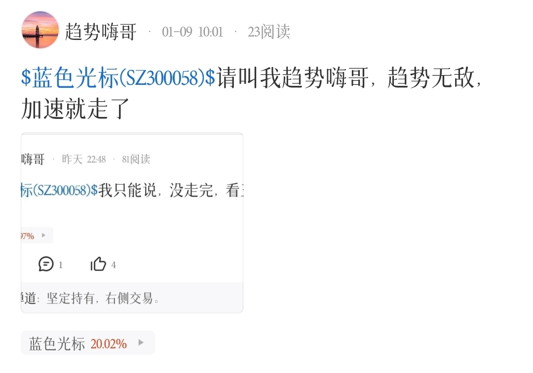 温馨提示: 1.根据《证券法》规定,禁止编造、传播虚假信息或者误导性信息,扰乱证券市场;2.用户在本社区发表的所有资料、言论等仅代表个人观点,与本网站立场无关,不对您构成任何投资建议。用户应基于自己的独立判断,自行决定证券投资并承担相应风险。《东方财富社区管理规定》
