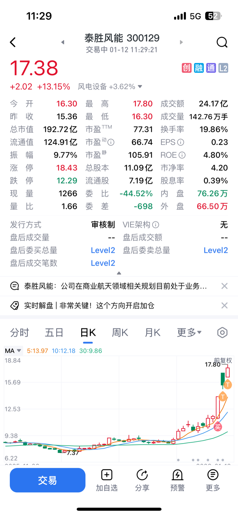 当然如果整个商业航天大低开我就重仓接回泰胜