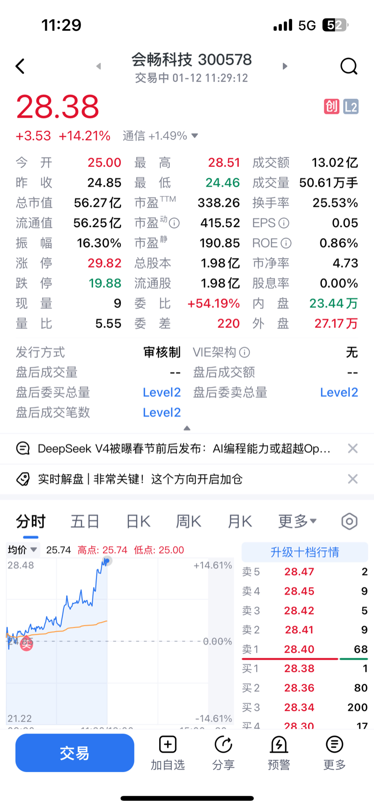 今天传媒依旧强势,1 2月传媒 3 4 5月化工看来还是很有道理的,所以果断低吸昨日涨停股会畅科技!