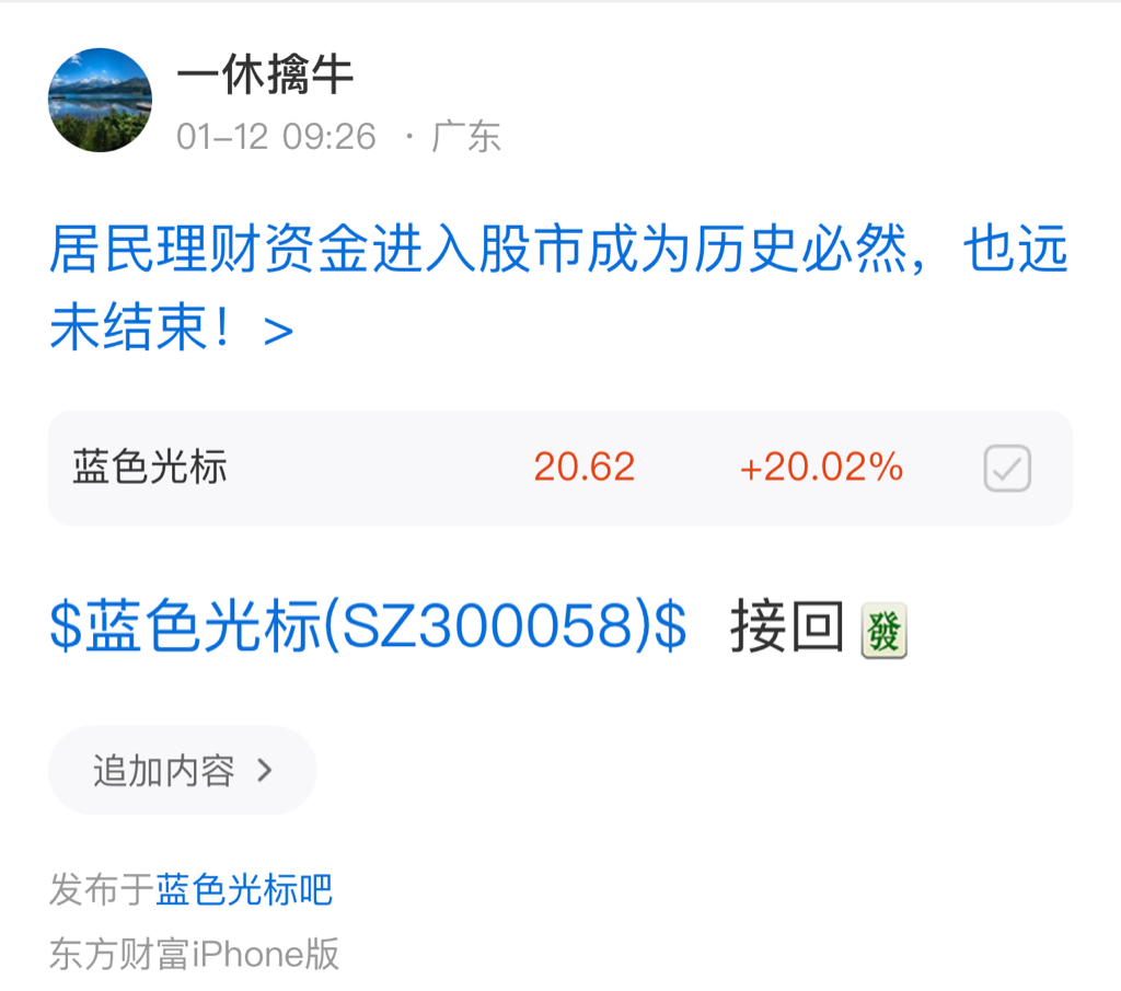 温馨提示: 1.根据《证券法》规定,禁止编造、传播虚假信息或者误导性信息,扰乱证券市场;2.用户在本社区发表的所有资料、言论等仅代表个人观点,与本网站立场无关,不对您构成任何投资建议。用户应基于自己的独立判断,自行决定证券投资并承担相应风险。《东方财富社区管理规定》