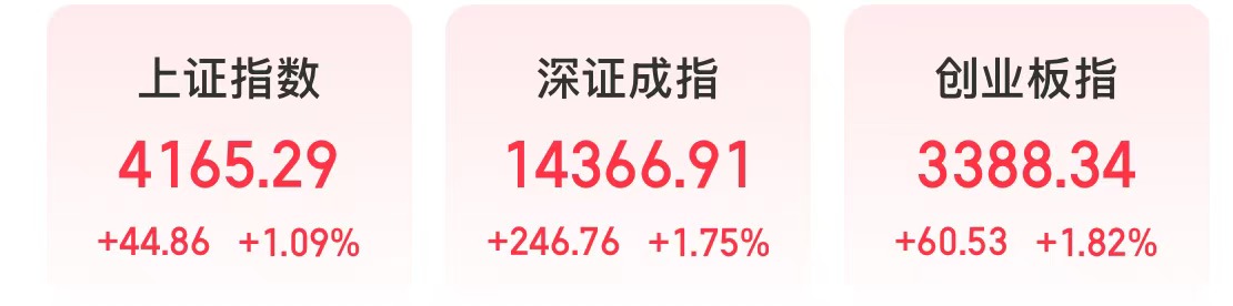 今天,A股上涨。截至收盘,上证指数上涨1.09%,深证成指上涨1.75%,创业板指上涨1.82%。