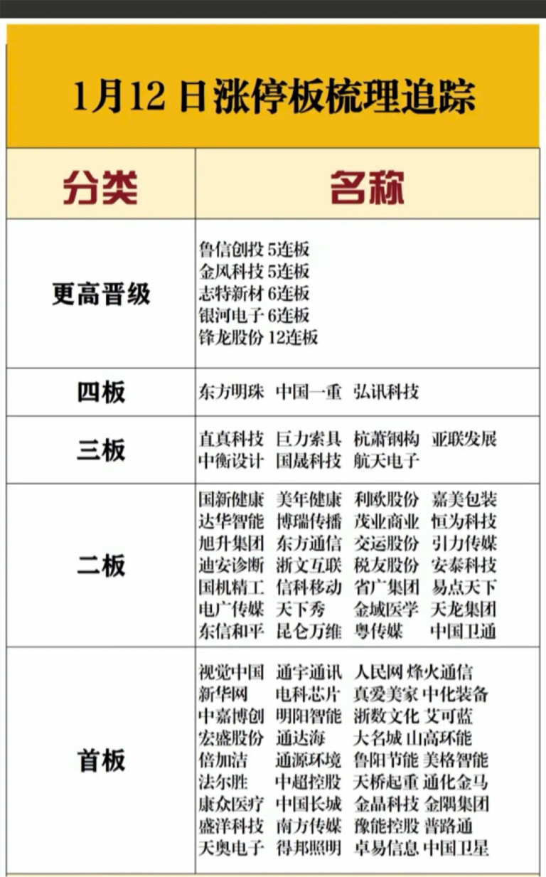 1.12周一涨停板股票:复盘总结!@财富在线wfwf196812连板锋龙股份6连