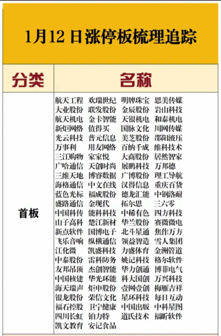 1.12周一 涨停板股票:复盘总结!@财富在线wfwf1968