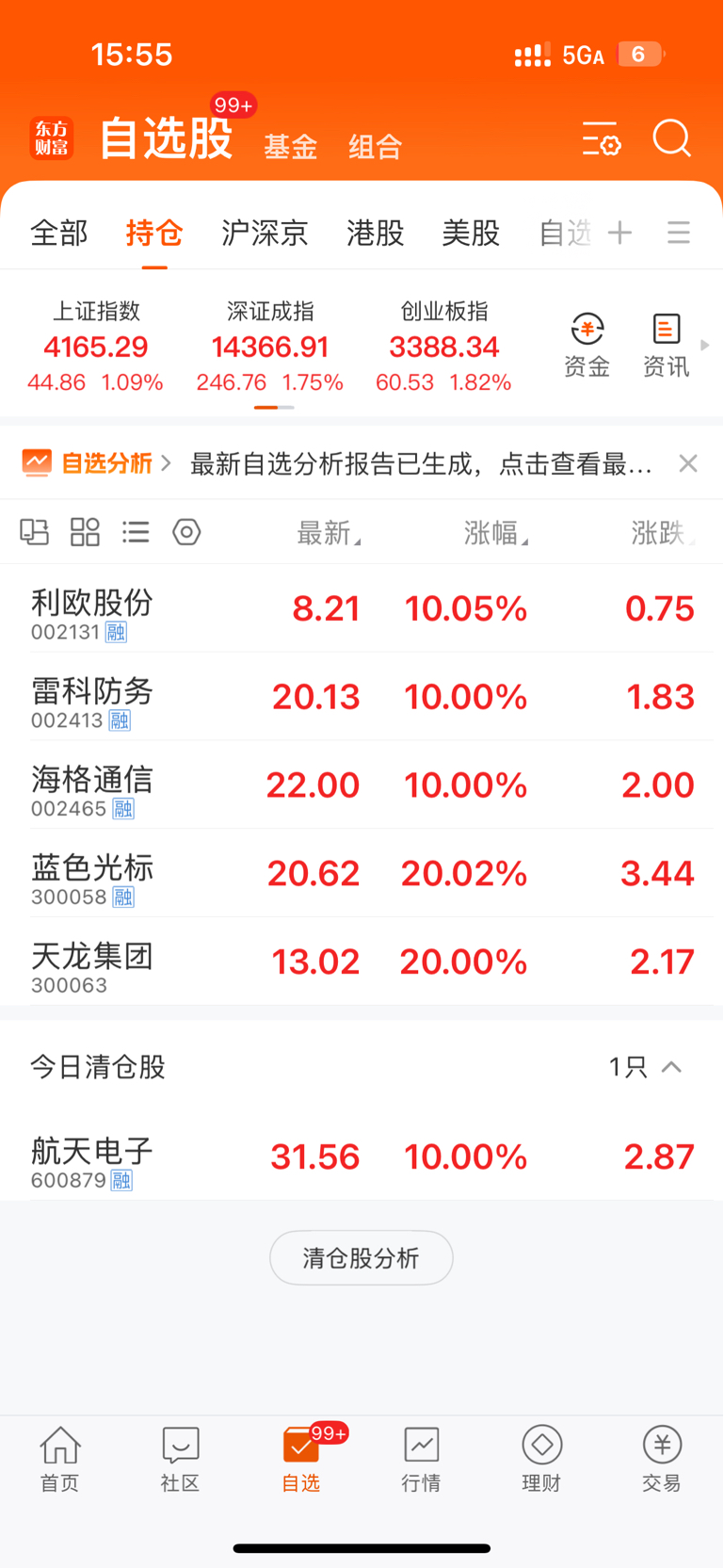这么久以来最爽的一天连清仓的票都是涨停的,要不要止盈减仓了