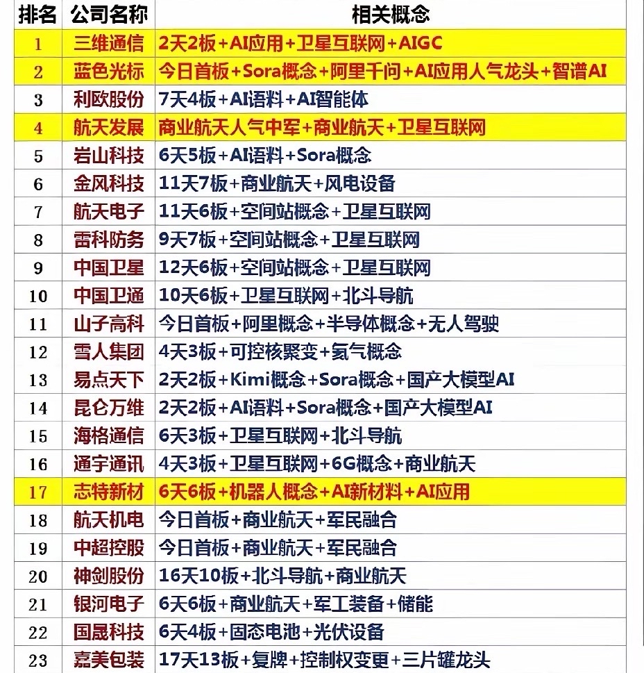 三维通信,AI应用叠加卫星互联网概念,后市值得高看一眼;蓝色光标,今日再次涨停,AI应用龙头叠加智谱AI概念,后市值得重点关注;志特新材,6连20cm涨停,后市值得期待!!!$蓝色光标(SZ300058)$ $利欧股份(SZ002131)$ $岩山科技(SZ002195)$