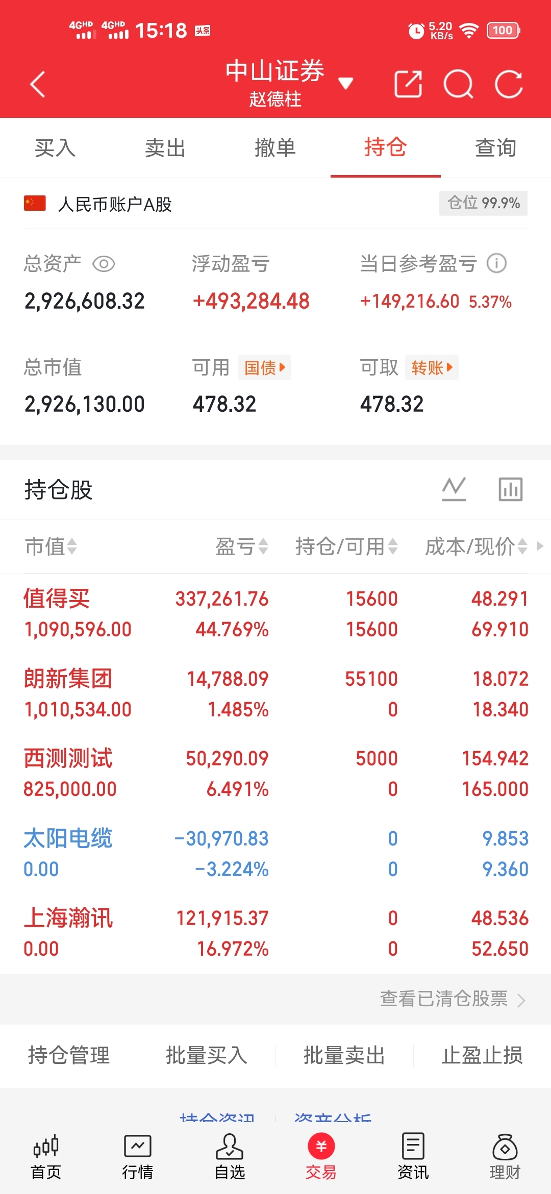 元旦后200W启动实盘记录:持有:值得买卖出:上海瀚讯,太阳电缆买入:西侧测试,