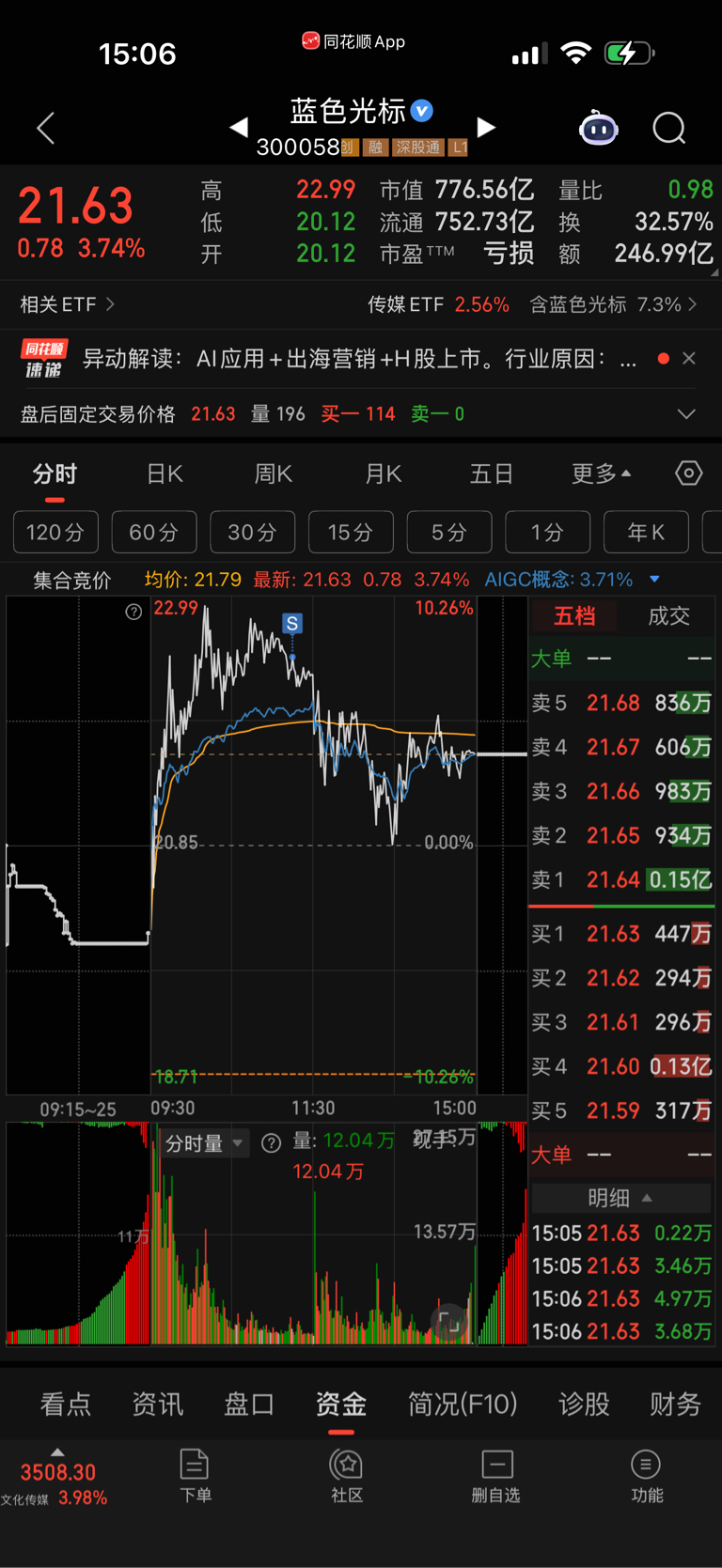 $蓝色光标(SZ300058)$ 这个卖点还可以吧,该强不强就要跑了,里面的兄弟不用慌,明天横盘震荡