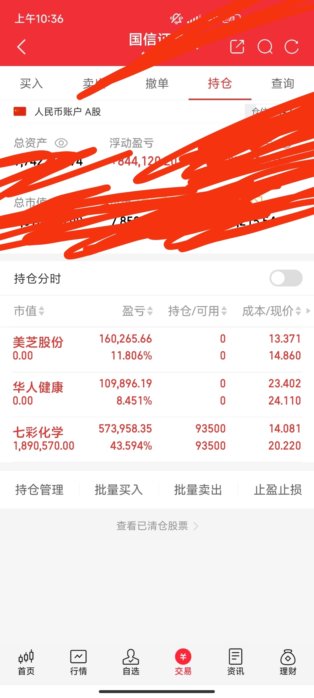 大家好,更新一下今日持仓将美芝股份和华人健康止盈出局!昨天入手了七彩化学,今天的