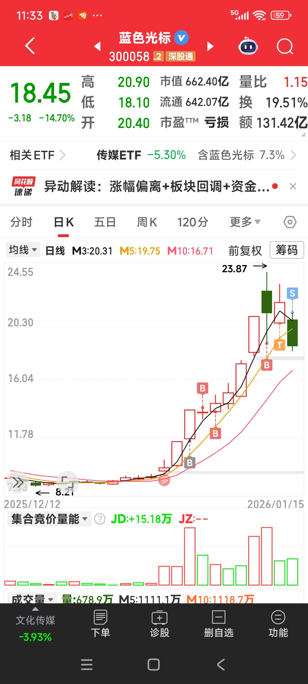 早盘清仓了蓝色光标!创业板高位反馈非常难看,不跟上面对着干,啥时候双头或者二波,