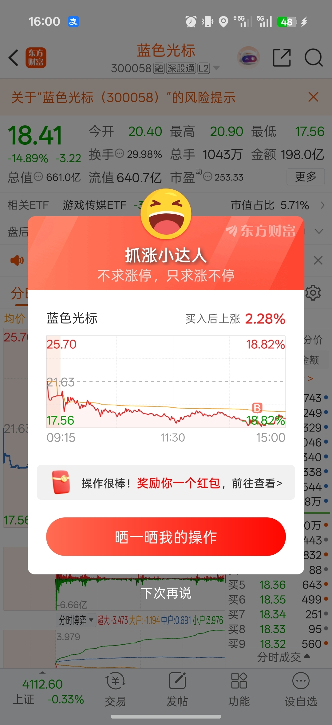 温馨提示: 1.根据《证券法》规定,禁止编造、传播虚假信息或者误导性信息,扰乱证券市场;2.用户在本社区发表的所有资料、言论等仅代表个人观点,与本网站立场无关,不对您构成任何投资建议。用户应基于自己的独立判断,自行决定证券投资并承担相应风险。《东方财富社区管理规定》