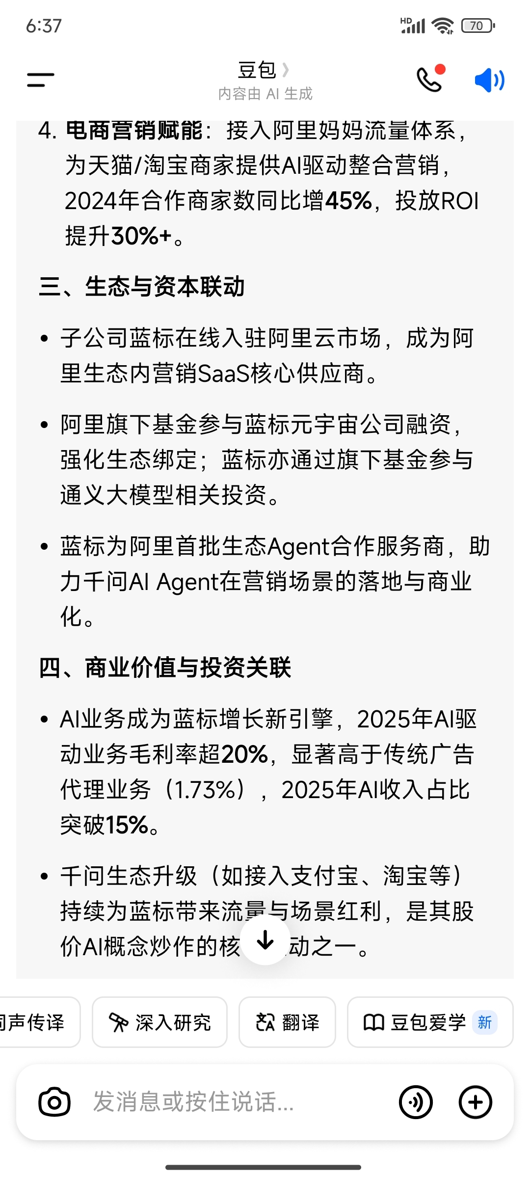 蓝色光标还是那个蓝色光标!逻辑还是那些逻辑!利好的预期未变,Ai应用元年,仍然看好后市(起码春晚是个关键节点,节目呈现的视角效果可能会左右Ai走势)!时间换空间,耐心等待!