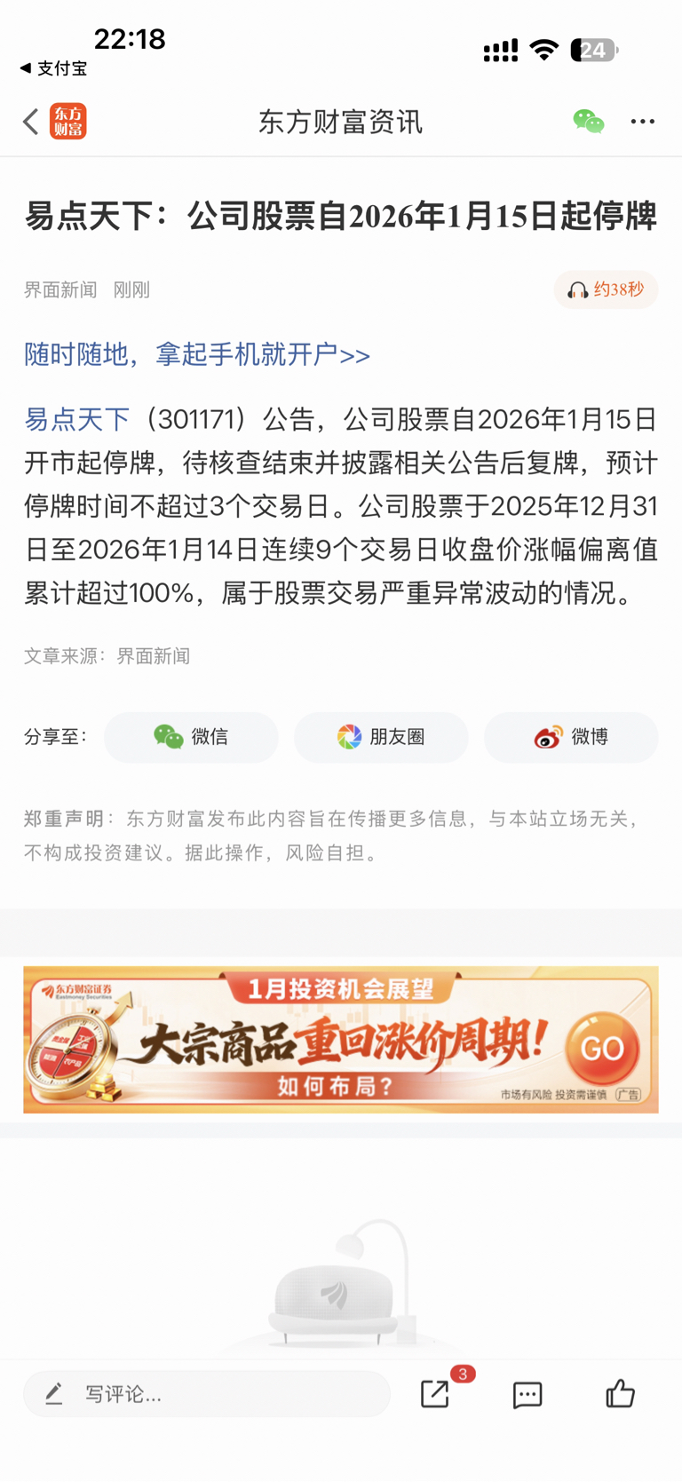 温馨提示: 1.根据《证券法》规定,禁止编造、传播虚假信息或者误导性信息,扰乱证券市场;2.用户在本社区发表的所有资料、言论等仅代表个人观点,与本网站立场无关,不对您构成任何投资建议。用户应基于自己的独立判断,自行决定证券投资并承担相应风险。《东方财富社区管理规定》
