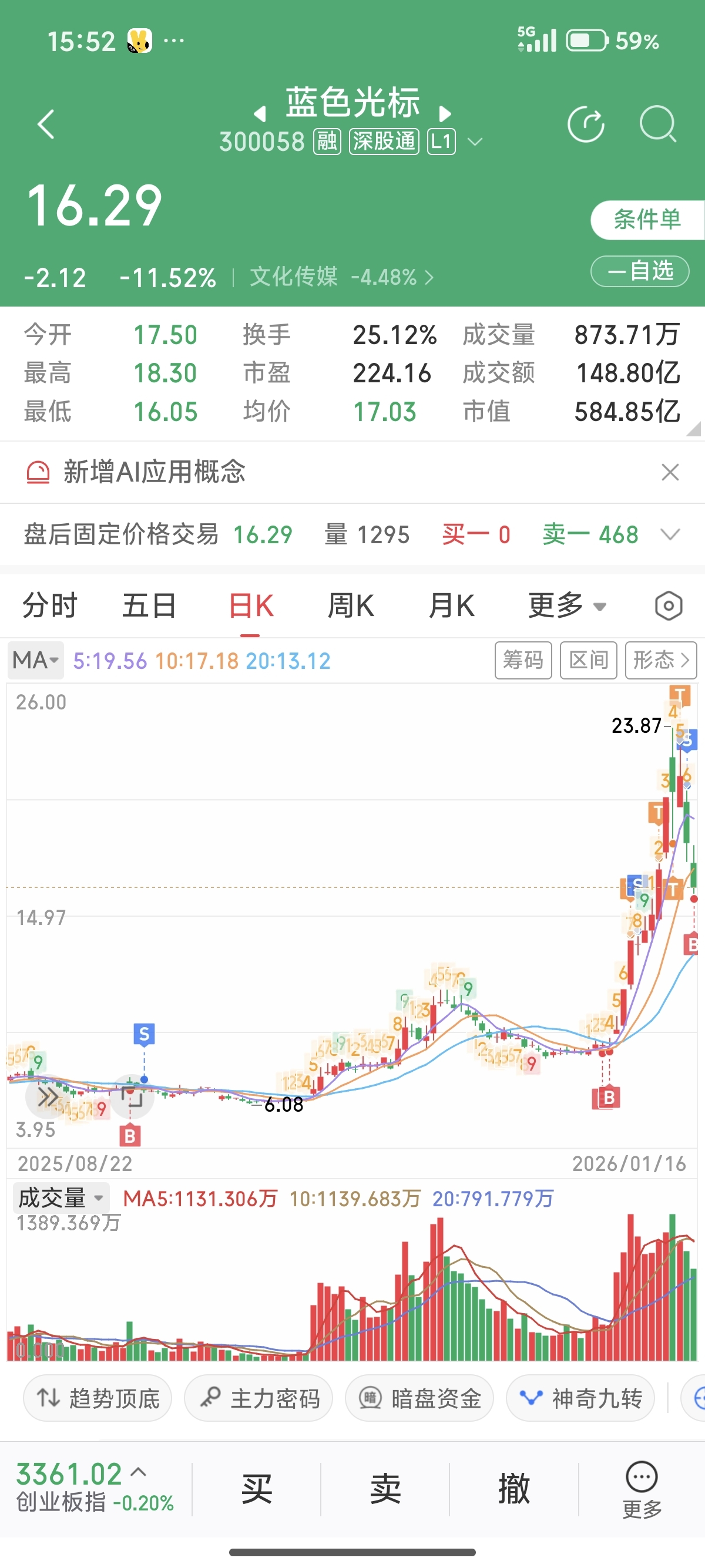 $蓝色光标(SZ300058)$ 不服,就是逆,不让涨也买,看准了就是,没有2倍利润不走,虽然利润大回撤,目前半仓下周继续满上