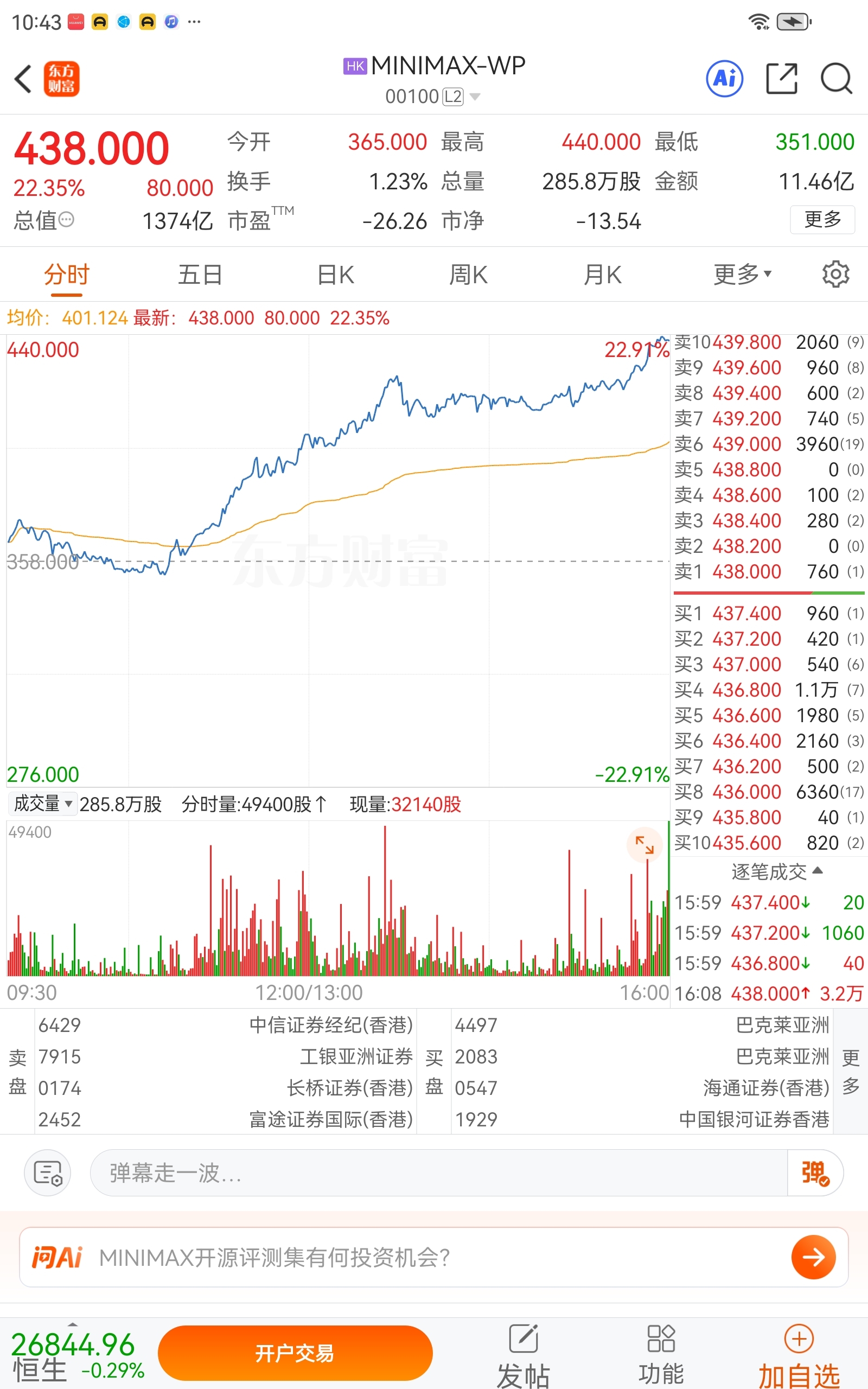 $蓝色光标(SZ300058)$ AI应用港股MINlMAX,大涨22%。