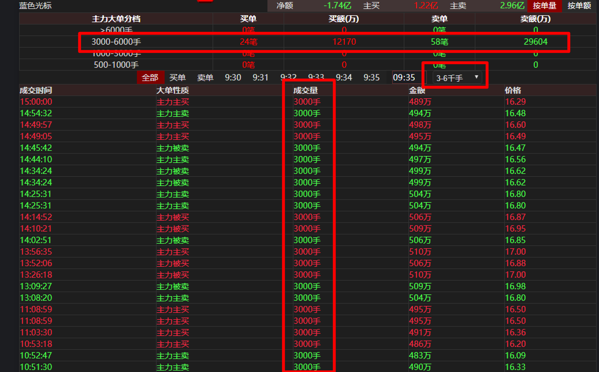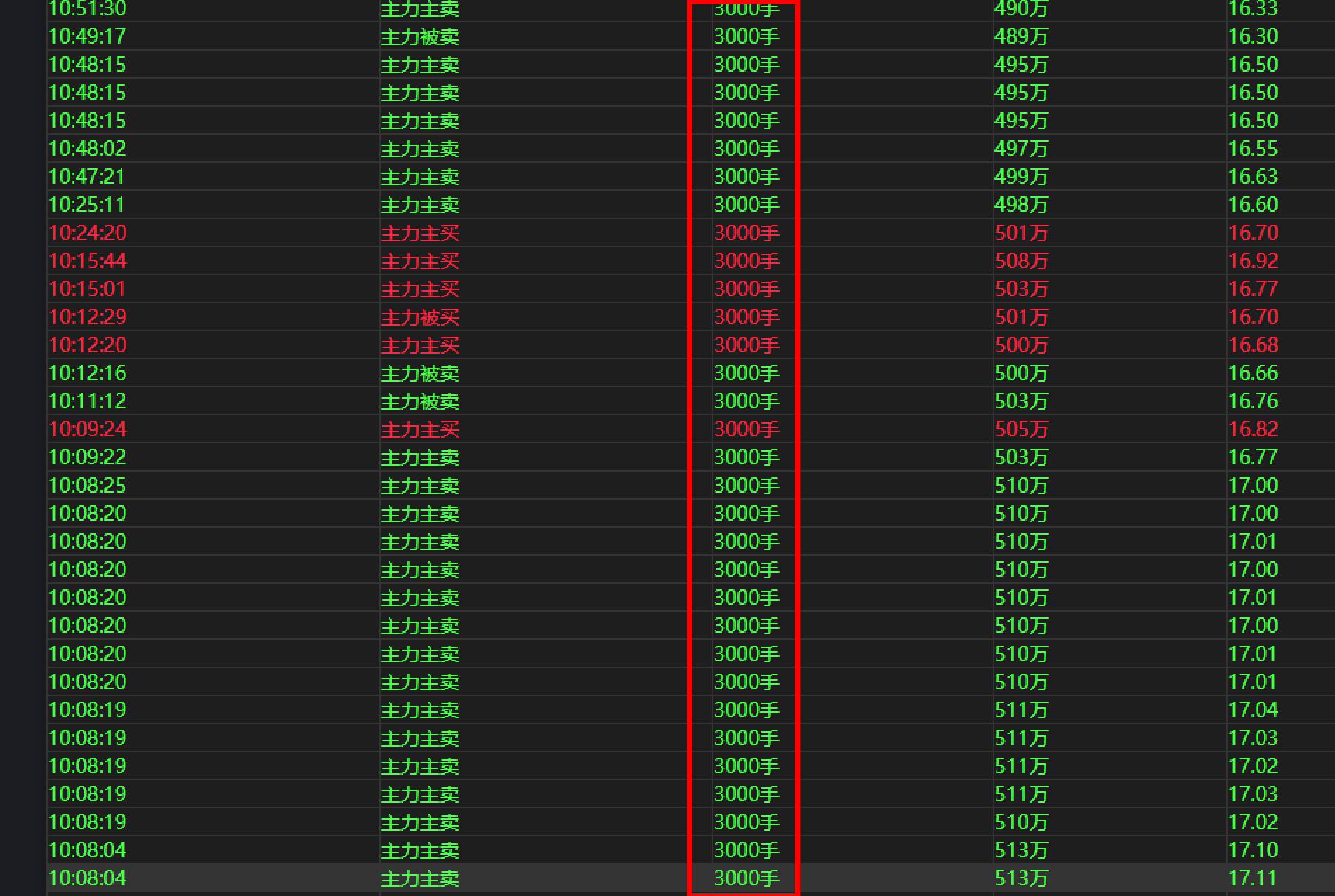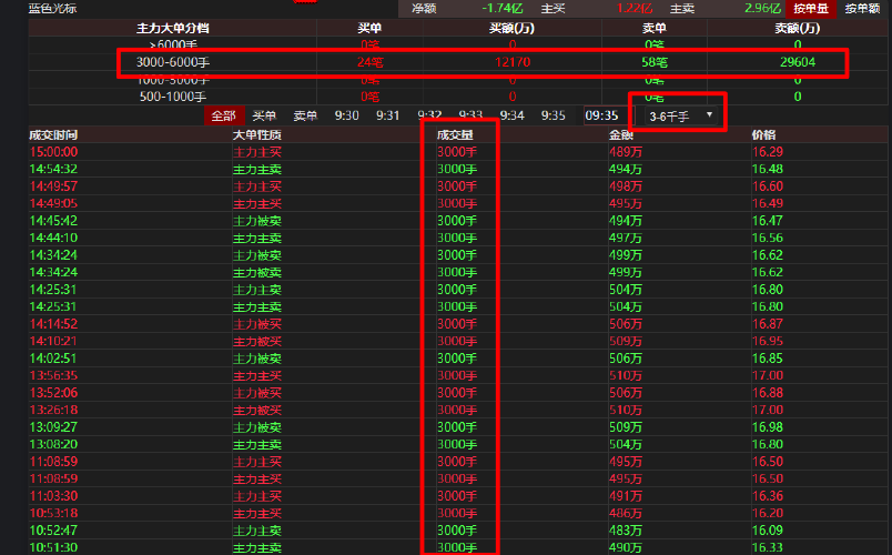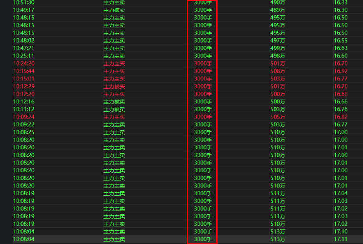 主力买卖大单3000~6000手之间,都是3000手,这是什么操作?