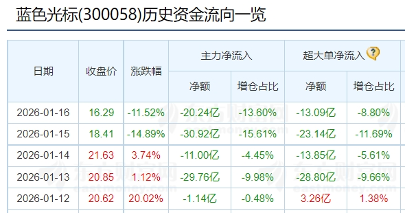 $蓝色光标(SZ300058)$ 180多亿流出,近期是没得救了,早点撤退出来吧