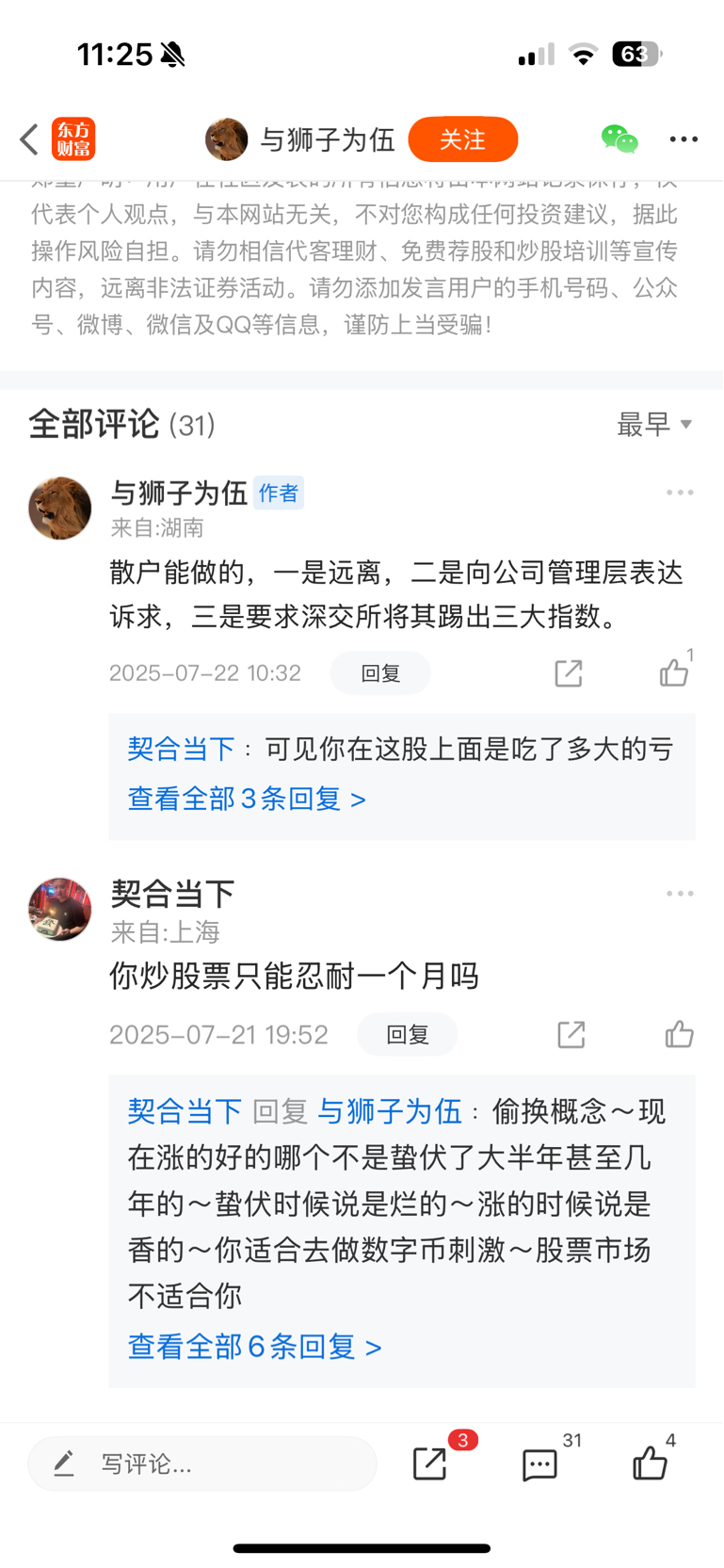 此狮子一直以老师自居,说话口气经常对话证监会上市公司管理层,实则没点实战能力,去