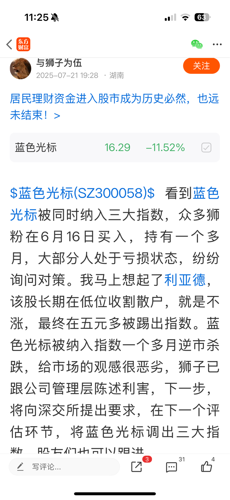 此狮子一直以老师自居,说话口气经常对话证监会上市公司管理层,实则没点实战能力,去年蓝标低位盘整时候和他辩解几句,就知道此人不学无术,如他以老师能让你发财入会缴费请慎重!