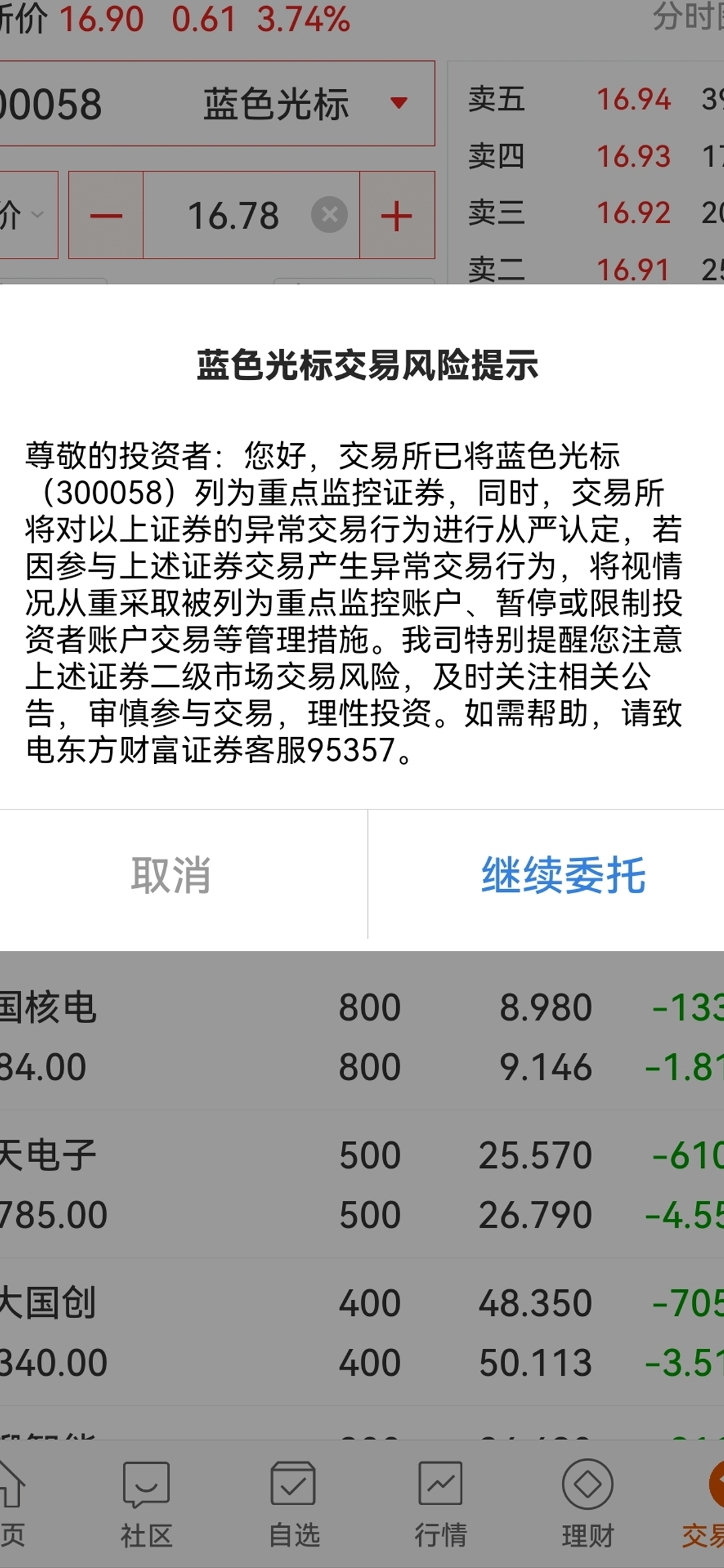温馨提示: 1.根据《证券法》规定,禁止编造、传播虚假信息或者误导性信息,扰乱证券市场;2.用户在本社区发表的所有资料、言论等仅代表个人观点,与本网站立场无关,不对您构成任何投资建议。用户应基于自己的独立判断,自行决定证券投资并承担相应风险。《东方财富社区管理规定》
