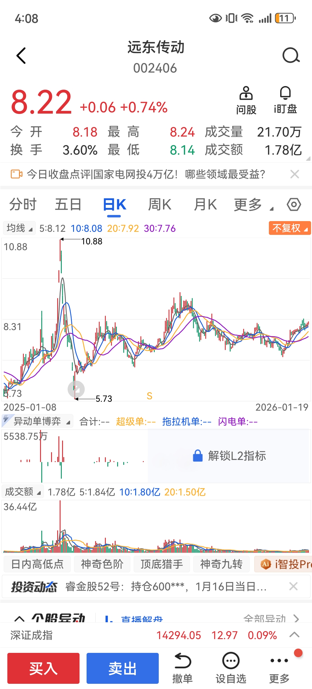周二新龙诞生————002406远东传动一骑绝尘