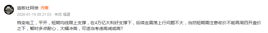 特变电工,昨天可以说有点意外,上周五大幅高开后放量回调,收出大阴线,虽确定有大概率是在洗盘,毕竟利好太过强烈,但大阴线一般会对短期股价上行造成压制。结果昨日低开后,股价不仅快速给到冲高,甚至在尾盘更是稳步走出封板。还好昨天考虑的是高T,而不是高减或离场。不然完全会错失大肉。