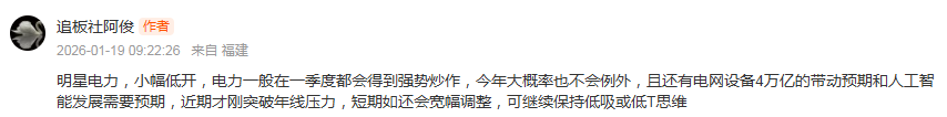 明星电力,昨日电力整体表现还可以,跟随电网设备给到中阳线上攻。同时一般来说电力在一季度都会迎来市场的炒作,再加上人工智能和经济发展对电力需求提升,今年的电力炒作值得期待。