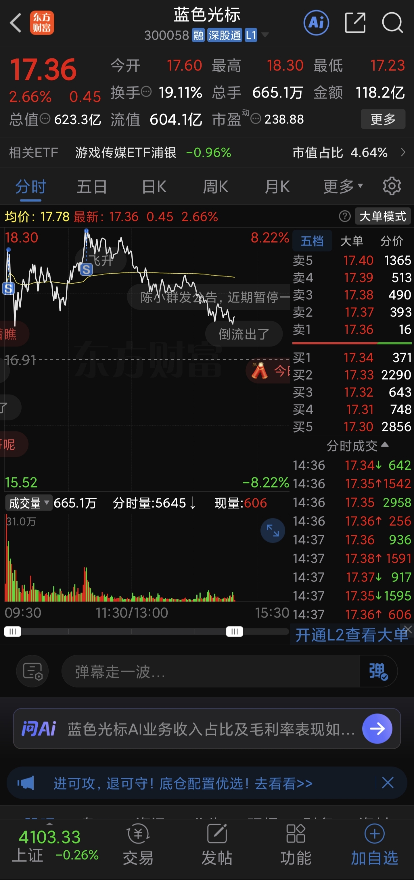 $蓝色光标(SZ300058)$ 卖了,明天低开接回来