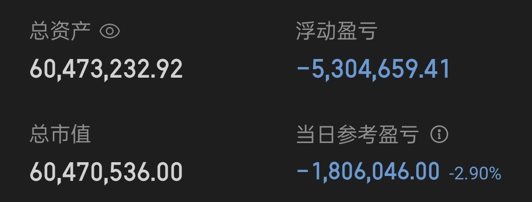 少帅日记;初始资产:7000万;今日战况:-2.90%;本月利润全部亏完!固守6