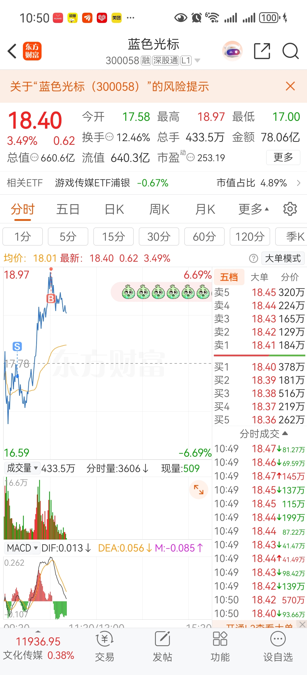 $蓝色光标(SZ300058)$ 坚持了三天,今天没坚持住走了,结果看见飞了,不甘心,又回来挨打,还有谁