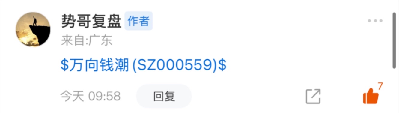$万向钱潮(SZ000559)$ 从早盘的表现来看整体承接良好、下午有望冲高走强!