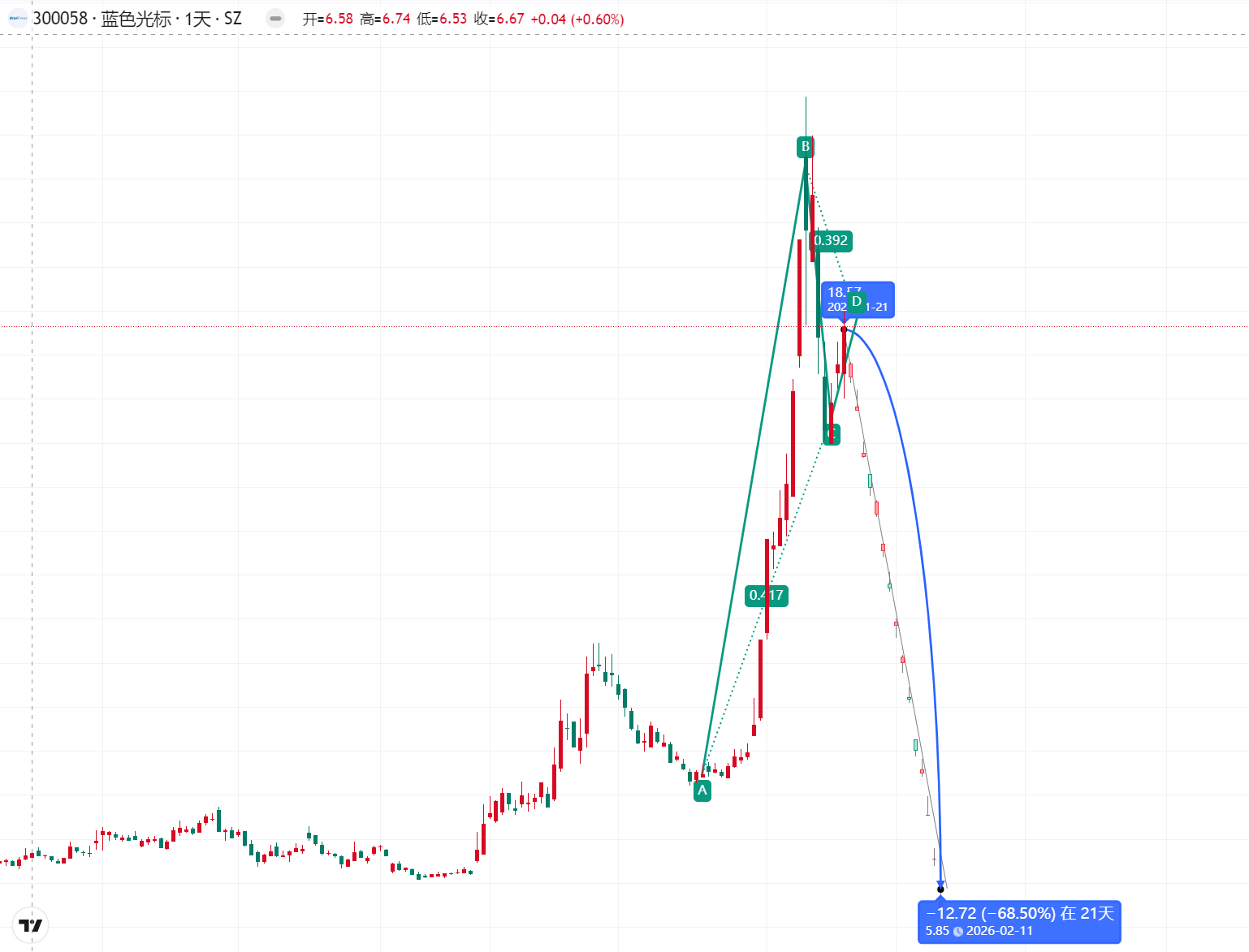 那个MACD看着好像刚金叉是吧?我告诉你们,这种高位的“水上金叉”最不靠谱,往往就是最后一波诱多。你再看看上面的压力位,20块钱那里的套牢盘像山一样厚,今天冲高根本没敢去碰那个压力区,说明多头根本就没底气,纯粹是虚晃一枪。
