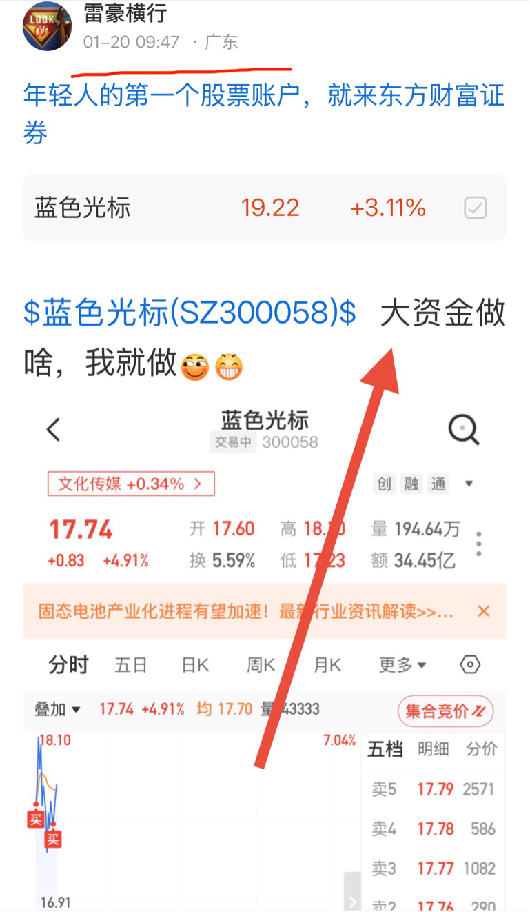 郑重声明:用户在财富号/股吧/博客等社区发表的所有信息(包括但不限于文字、视频、音频、数据及图表)仅代表个人观点,与本网站立场无关,不对您构成任何投资建议,据此操作风险自担。请勿相信代客理财、免费荐股和炒股培训等宣传内容,远离非法证券活动。请勿添加发言用户的手机号码、公众号、微博、微信及QQ等信息,谨防上当受骗!