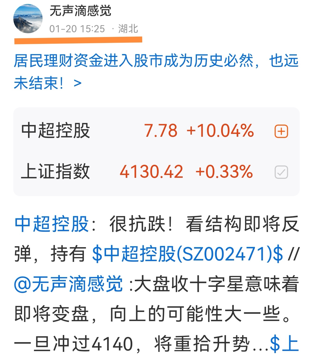 温馨提示: 1.根据《证券法》规定,禁止编造、传播虚假信息或者误导性信息,扰乱证券市场;2.用户在本社区发表的所有资料、言论等仅代表个人观点,与本网站立场无关,不对您构成任何投资建议。用户应基于自己的独立判断,自行决定证券投资并承担相应风险。《东方财富社区管理规定》