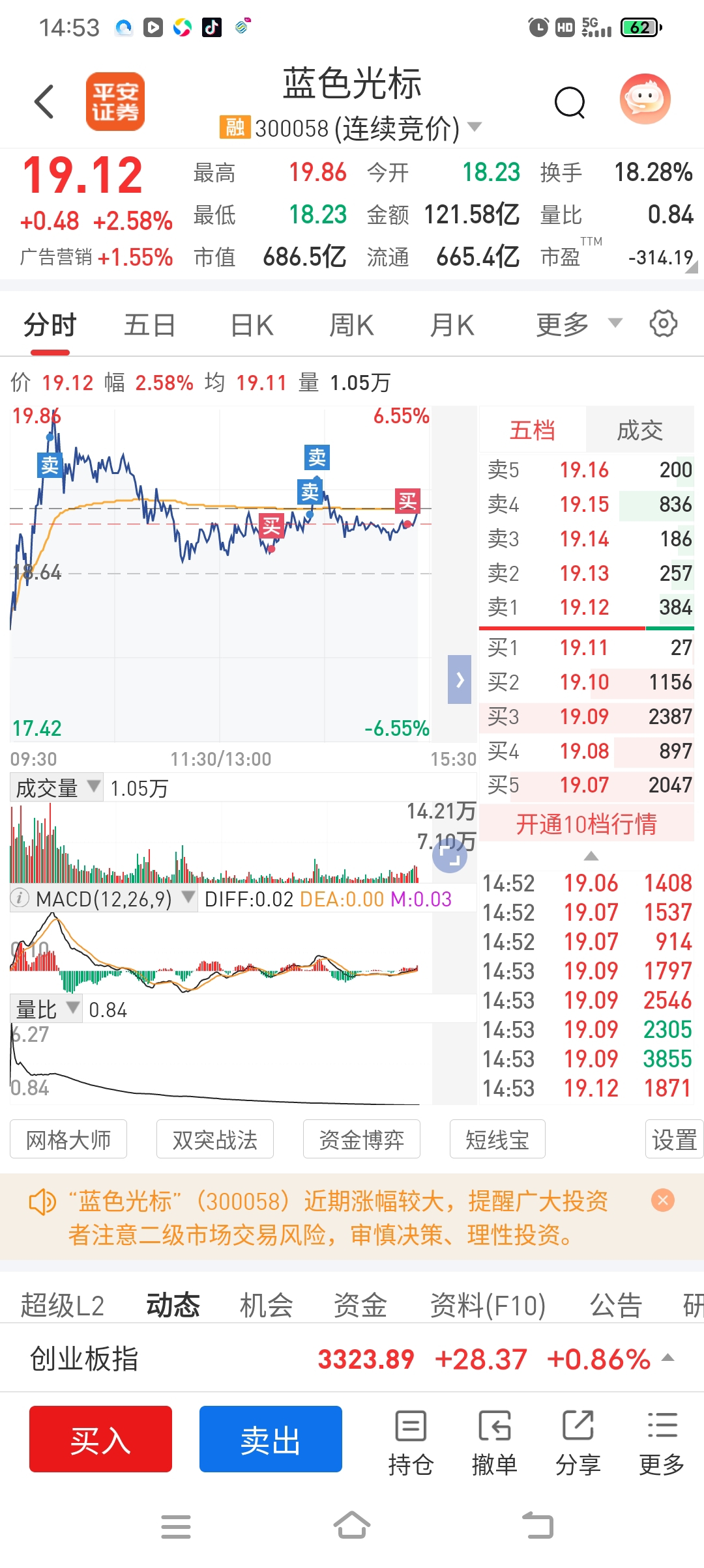 $蓝色光标(SZ300058)$ 还是小心使得万年船!幸亏第二天福石换了光标,从套18%小盈利6%,明天看情况风紧扯呼