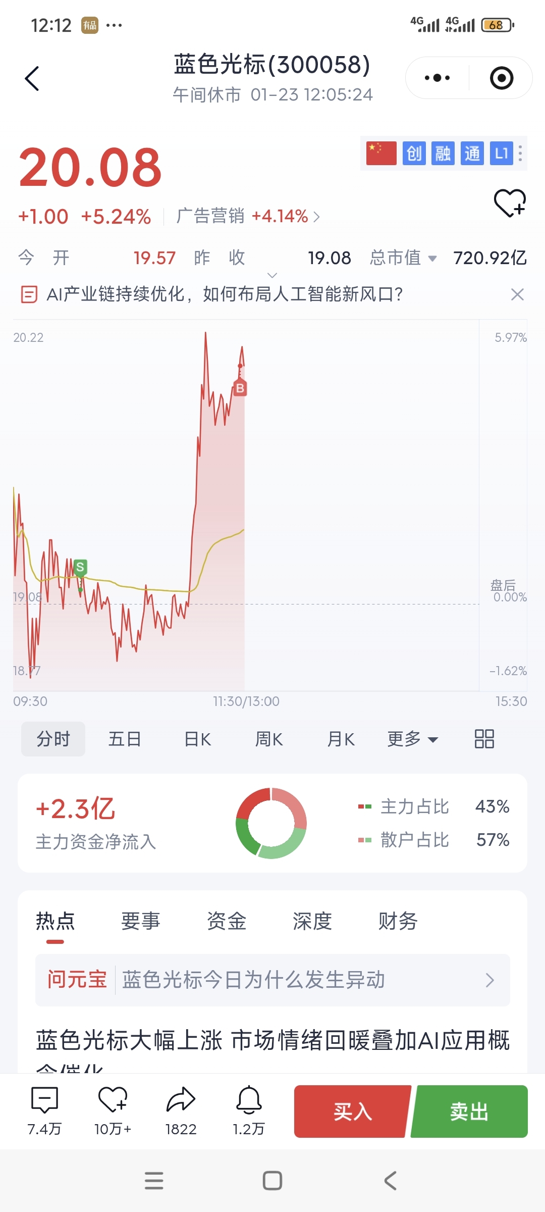 $蓝色光标(SZ300058)$ 这主力把我玩的团团转啊