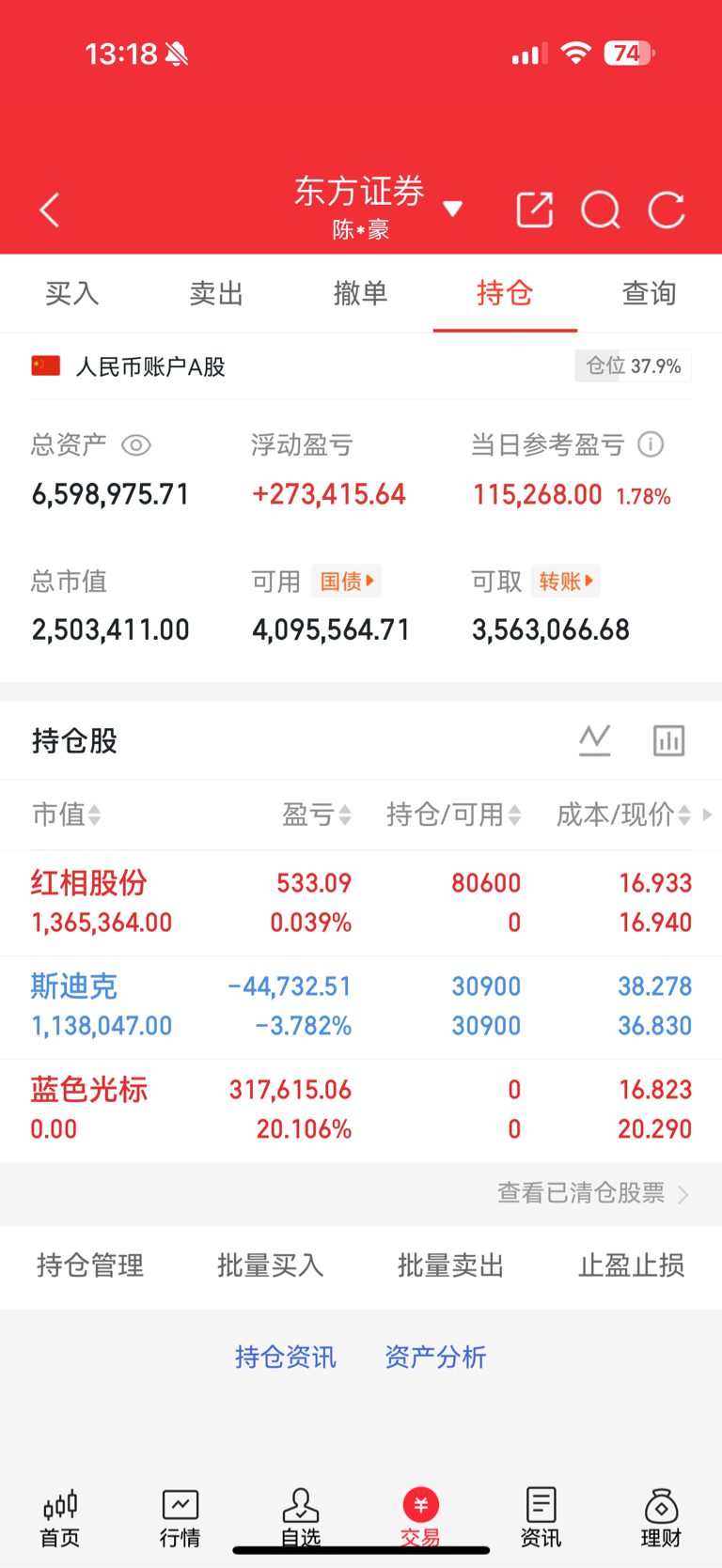 $蓝色光标(SZ300058)$ 今天获利出局了,接着买入了$红相股份(SZ300427)$ $斯迪克(SZ300806)$ 继续持有,非常不错的一天。