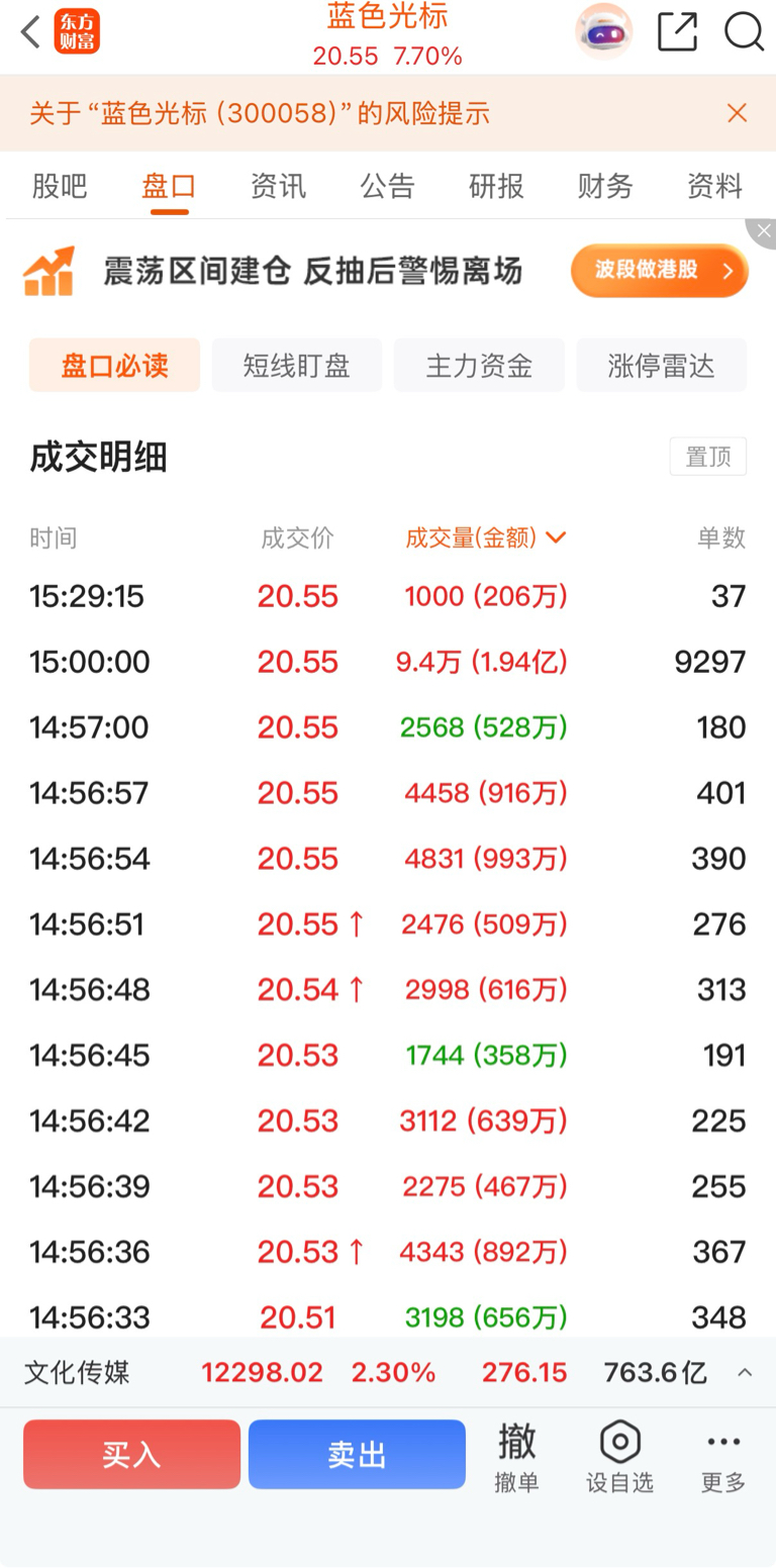 $蓝色光标(SZ300058)$ 不是。,3:29还有一笔买入,这咋买的?