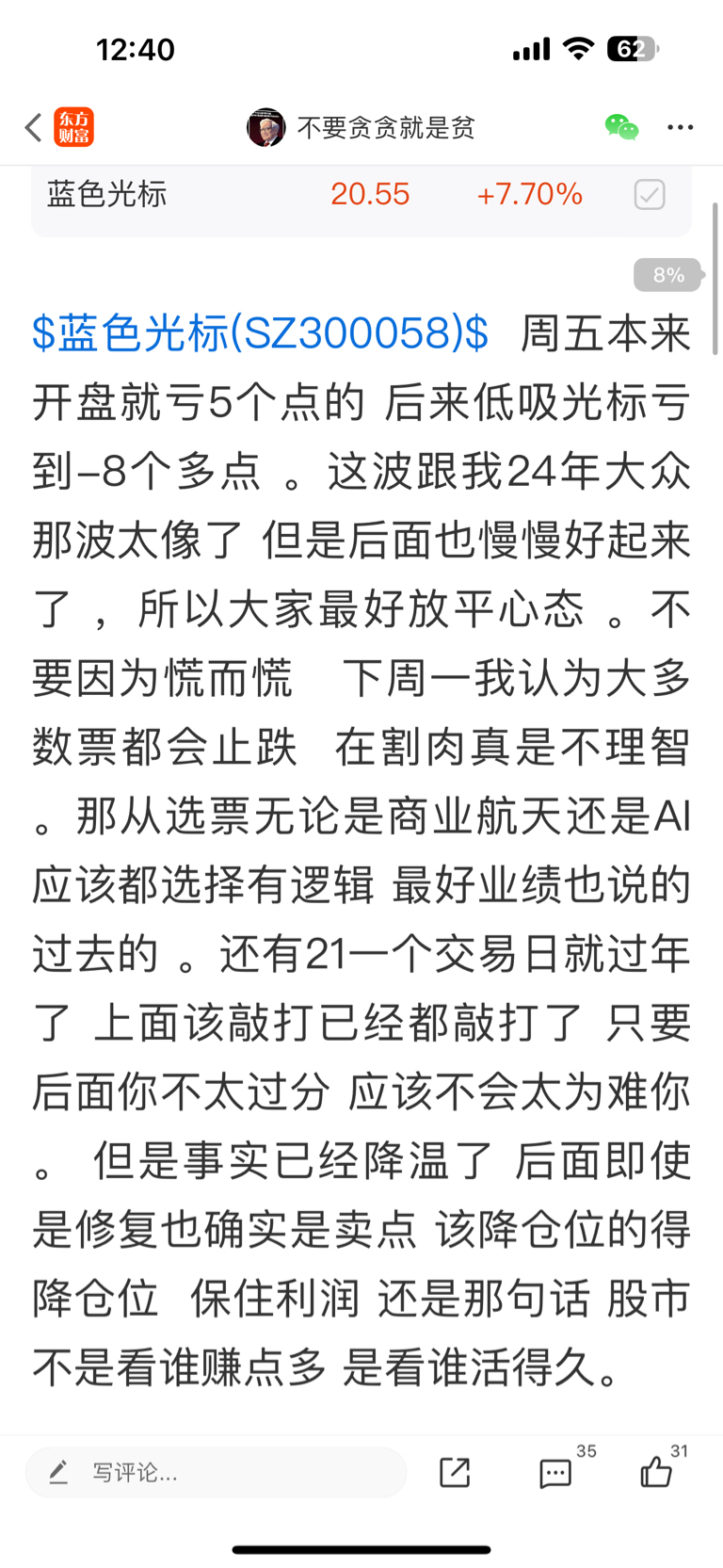 温馨提示: 1.根据《证券法》规定,禁止编造、传播虚假信息或者误导性信息,扰乱证券市场;2.用户在本社区发表的所有资料、言论等仅代表个人观点,与本网站立场无关,不对您构成任何投资建议。用户应基于自己的独立判断,自行决定证券投资并承担相应风险。《东方财富社区管理规定》