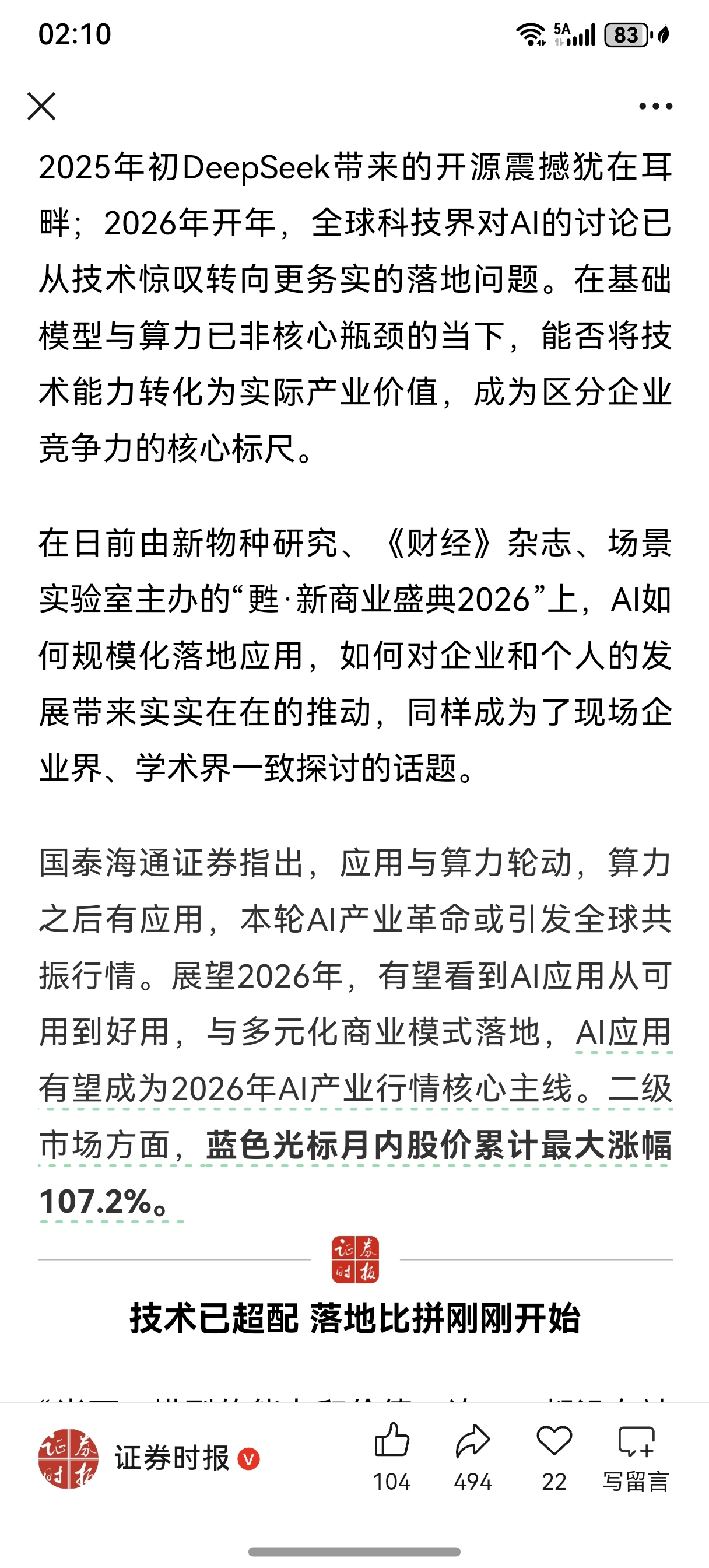 暴涨超100%!AI应用龙头火了,后市如何走?一一证券时报在吹风了