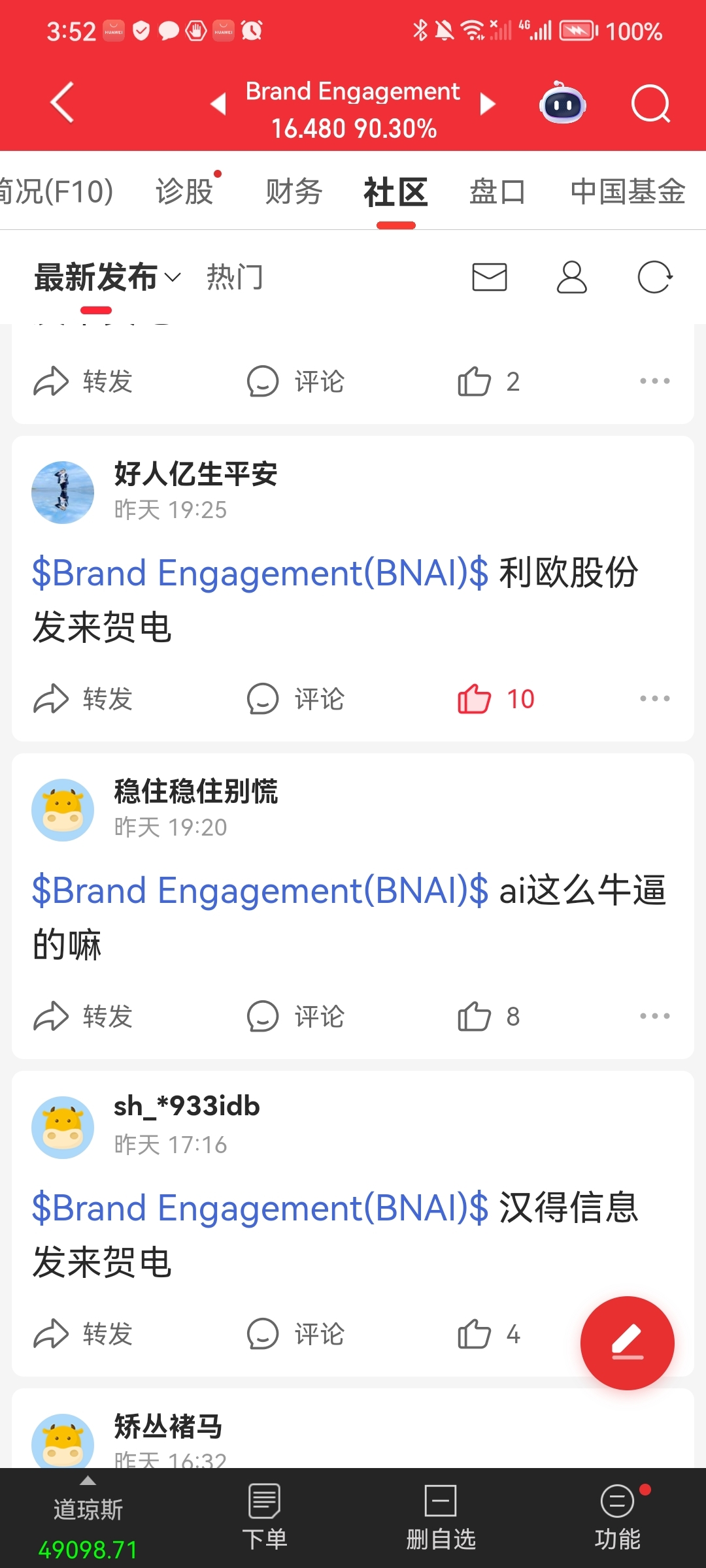 温馨提示: 1.根据《证券法》规定,禁止编造、传播虚假信息或者误导性信息,扰乱证券市场;2.用户在本社区发表的所有资料、言论等仅代表个人观点,与本网站立场无关,不对您构成任何投资建议。用户应基于自己的独立判断,自行决定证券投资并承担相应风险。《东方财富社区管理规定》